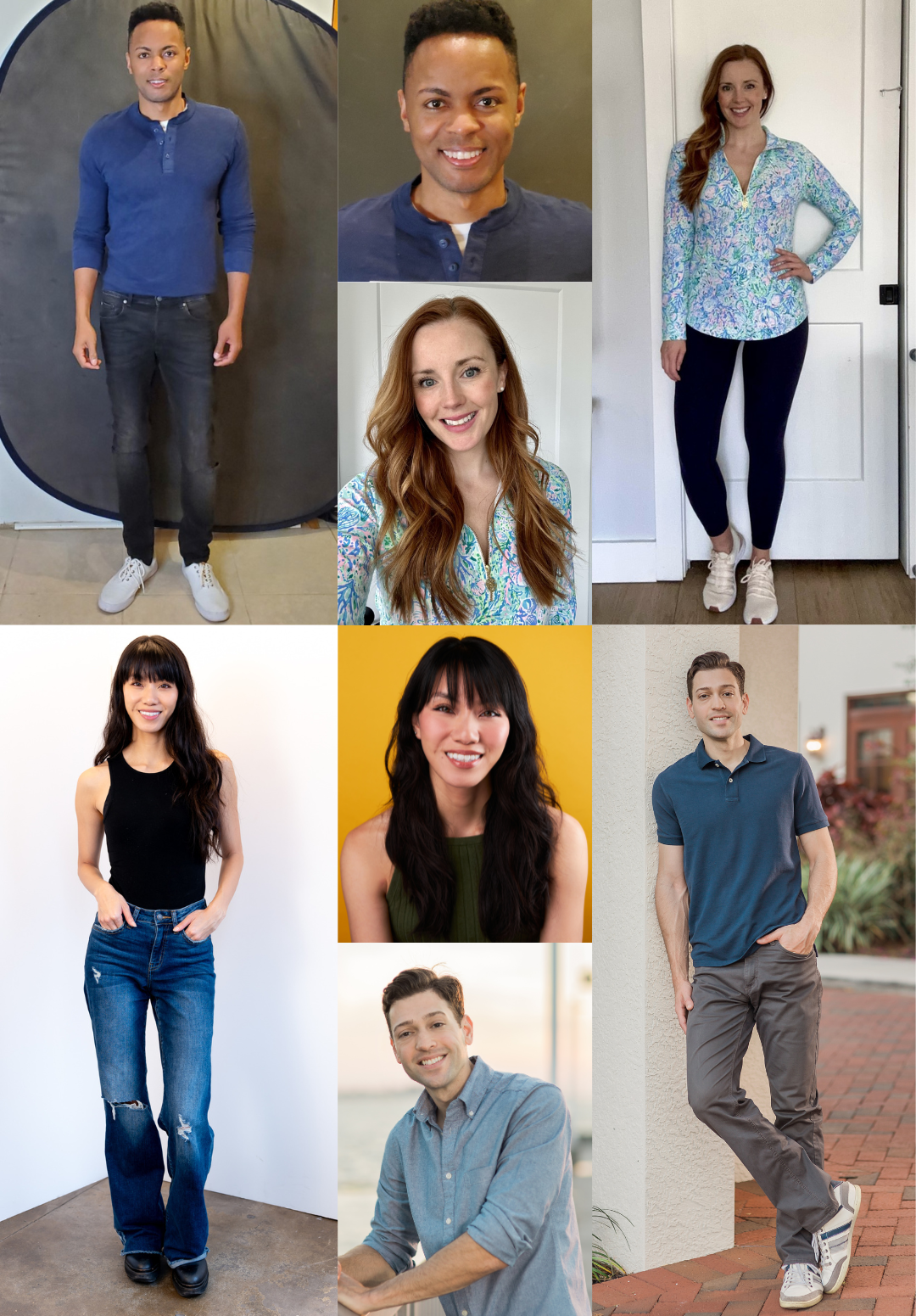 At least one photo should show a smile with teeth. Natural posing, a plain background, and natural lighting is ideal. Wear fitted clothes, and minimal makeup. No hats, or glasses, please. Professional photos are preferred, but not required!